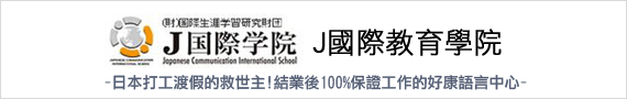 本學院的母體是一所名為「(株)國際通信社」的出版社,擁有20多年歷史,繼而創立了日本語學校。正因是出版社出身,所以培養出的日語能力,其敏銳性及正確性要求相當高,亦提供千錘百煉的高程度語言學習課程,不僅是桌面上的學習,更培養學生擁有「正確的傳達語言能力」。本學院運用出版社的專業知識實踐於日本語教育上。本學院設立於2003年9月、2004年1月正式成為財團法人日本語教育振興協會的認定學校。雖然尚屬一所年輕學校,但我們深信,教職員對學生的感情是絕不會輸給他校。教職員不但年輕,也非常理解學生的心情,同時也不忘在適時表現嚴格的態度。「本學院不僅是一所溫柔的學校」,教職員更同心協力冀望成為一所充滿關懷的學校。J國際教育學院隨著打工渡假開放,2009年開始進行”結業生工作保證制度”,與多類型的日本企業合作,保證飯店、旅行社、餐廳等各行各業的打工。如果想要打工渡假,卻因日文能力而擔心是否找得到工作,熱烈推薦就讀J國際教育學院!!!