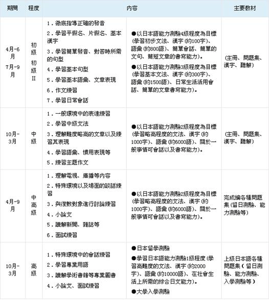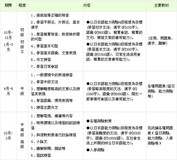 | 其他課程:短期課程 / 短期遊學課程 / 一般日語一年課程 |