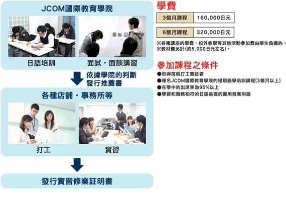 - 學生憑打工度假簽證就讀,保證100%獲得工作