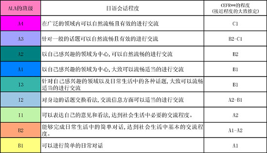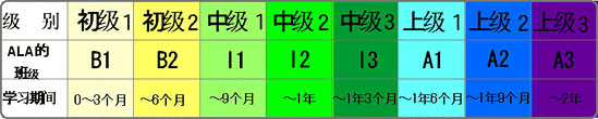 ALA日語學校各班日語水準如下圖所示。